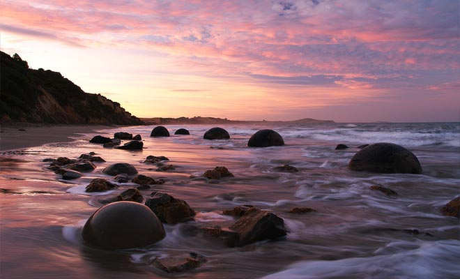 Les Moeraki Boulders sont des rochers qui bordent toute la plage de Koekohe Beach.
